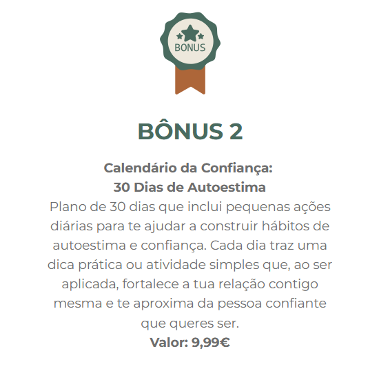 BÓNUS 2: Calendário da Confiança: 30 Dias de Autoestima (9,99€)
