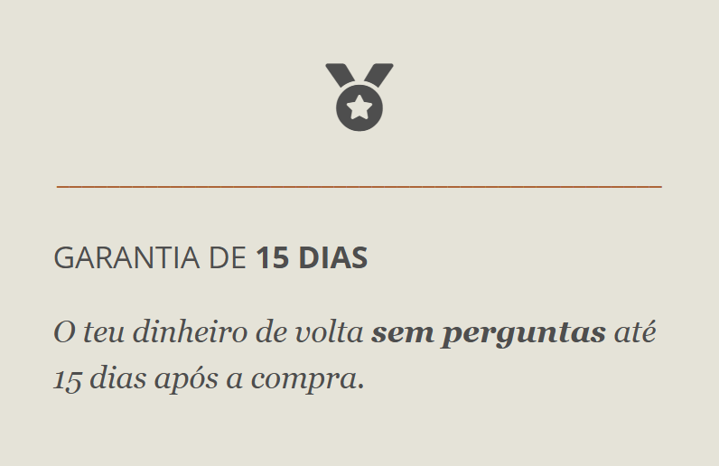 Oferecemos uma garantia de 15 dias. Se dentro desse período sentires que o ebook não está a ser útil, basta pedires o reembolso total. Queremos que invistas com segurança e confiança.
